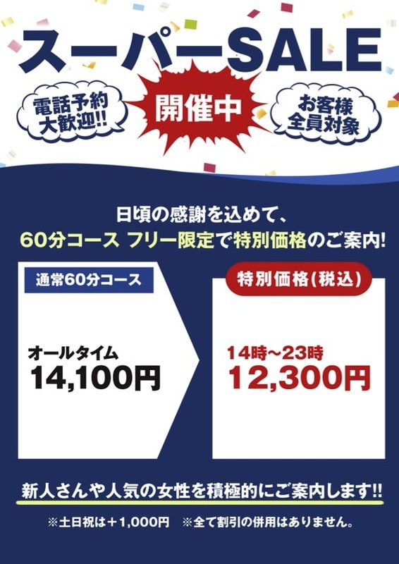 ■ 土日祝日はオールタイム1,000円アップ